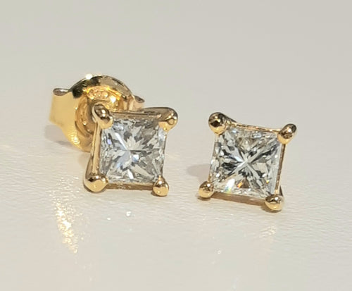 0.65ct [2] Princess Cut Diamonds | Stud Earrings | 18kt Yellow Gold