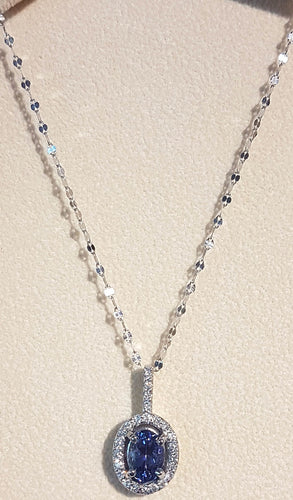 1.50ct |Oval Cut Tanzanite 0.25ct Round Cut Diamond Pendant with Chain| in 18kt White Gold