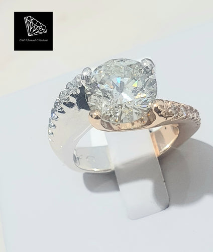 2.876ct Round Brilliant Cut Certified Diamond | 0.20ct [12] Round Brilliant Cut Diamonds | Designer Twist Ring | 18kt Rose and White Gold